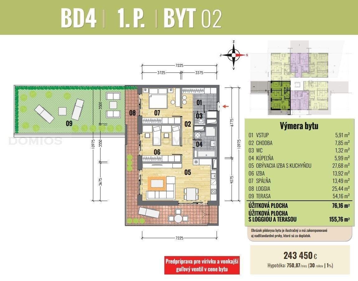 3-izb. byt | 155,76 m2 | loggia, terasa | 243.450 €