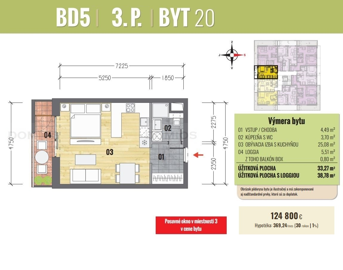 1-izb. byt | 38,78 m2 | loggia | 124.800 €