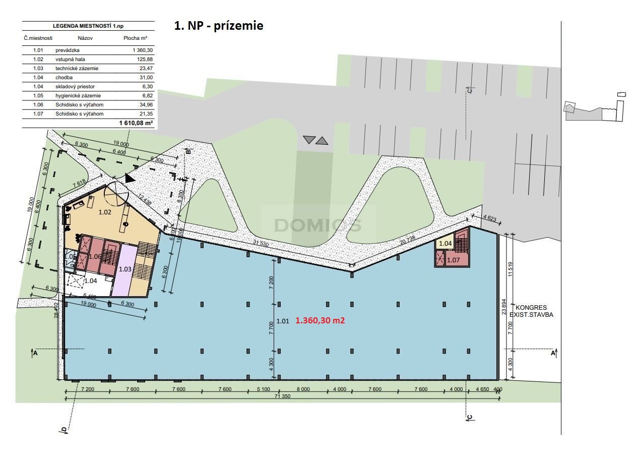 1. NP | prízemie | 1.01 | do 1.360,30 m2 | klimatizácia