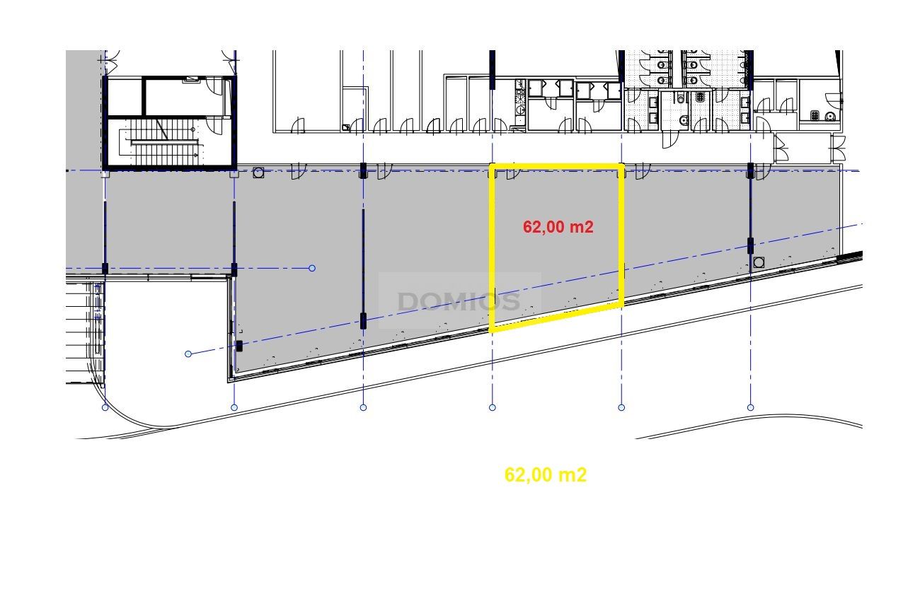 Ponúkané priestory majú celkovú výmeru 62,00 m2 a nachádzajú sa na 1. posch. Sú plne klimatizované. Pozostávajú v súčasnosti z 1 priestrannej kancelárie (62,00 m2) s bohatým presklením s oknami s hliníkovými rámami, kvalitnými záťažovými kobercami a prípojku optického internetu. V prípade potreby je možné dispozičné riešenie a kvalitatívny štandard upraviť podľa potrieb nájomníka.